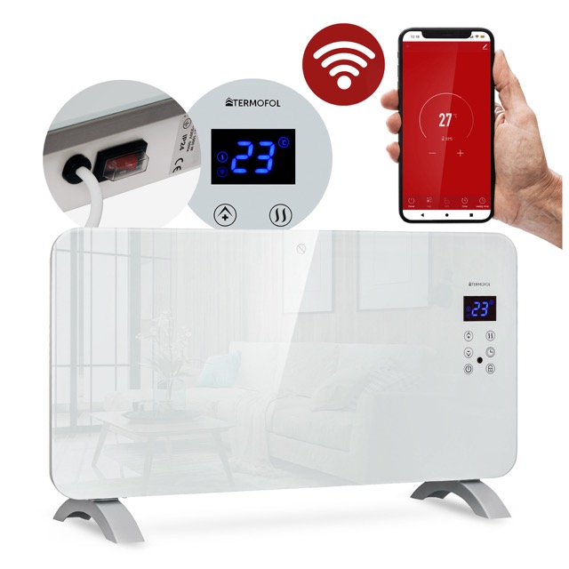 TERMOFOL TF-1500WiFi je moderní a energeticky úsporný konvektorový ohřívač s možností montáže na zeď nebo volně stojící na podlaze.