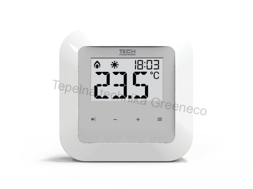 Funkce: udržování zadané teploty v místnosti, udržování zadané teploty podlahy (min. a max.), ruční režim, režim den/noc, zobrazení vlhkosti vzduchu
