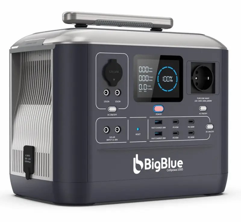 Mějte vždy po ruce svou vlastní přenosnou elektrárnu – ideální i do kempu nebo uprostřed přírody. Nabíjecí stanice BigBlue CellPowa 1000 vám poskytne napájení a nabíjení široké škály zařízení po několik hodin. Díky rychlému nabíjení, bezpečnému používání a ekologickému provozu je ideální nejen pro domácnost, ale také do dílny, garáže či na cesty mimo civilizaci.