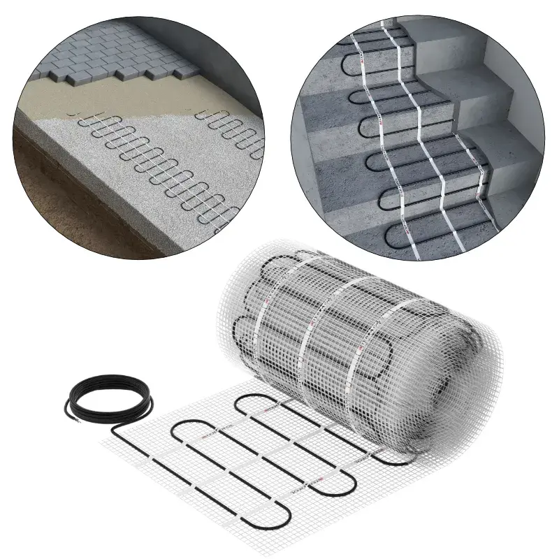 Montáž lze provést do vrstvy písku, na kterou se v pozdější fázi prací položí dlažební kostky, betonové desky nebo asfalt, nebo přímo do betonu. Elektrická instalace napájející topný kabel by měla být vybavena proudovým chráničem s citlivostí menší nebo rovnou 30 mA.